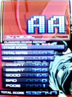 意外と右に偏ってあたり譜面とは言えなかったのですがなんとかフルコン。